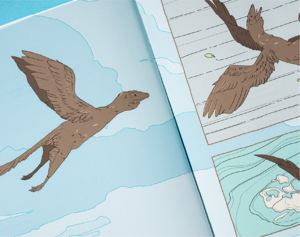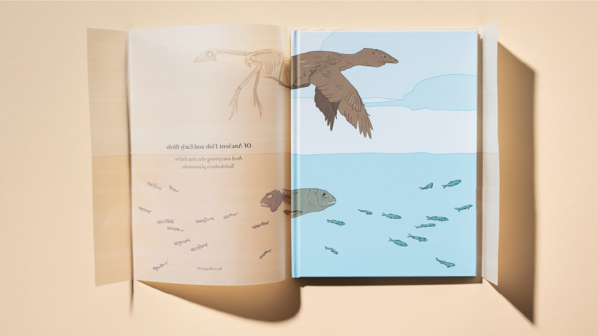Dieses populärwissenschaftliche Buch ist mein Bachelor-Abschlussprojekt. Es beschäftigt sich mit den Solnhofener Plattenkalken, die nicht nur für ihre lithografischen Druckplatten, sondern vor allem für die Funde des Archaeopteryx bekannt sind. Archaeopteryx ist ein Dinosaurier, der Darwins Evolutionstheorie bestätigte und als Übergangsform zwischen Dinosaurier und Vogel gilt. Das Buch widmet sich der grundlegenden Frage: Wie sahen die Plattenkalke vor 150 Millionen Jahren aus? Welche Tiere lebten dort außer dem Archaeopteryx und wie?