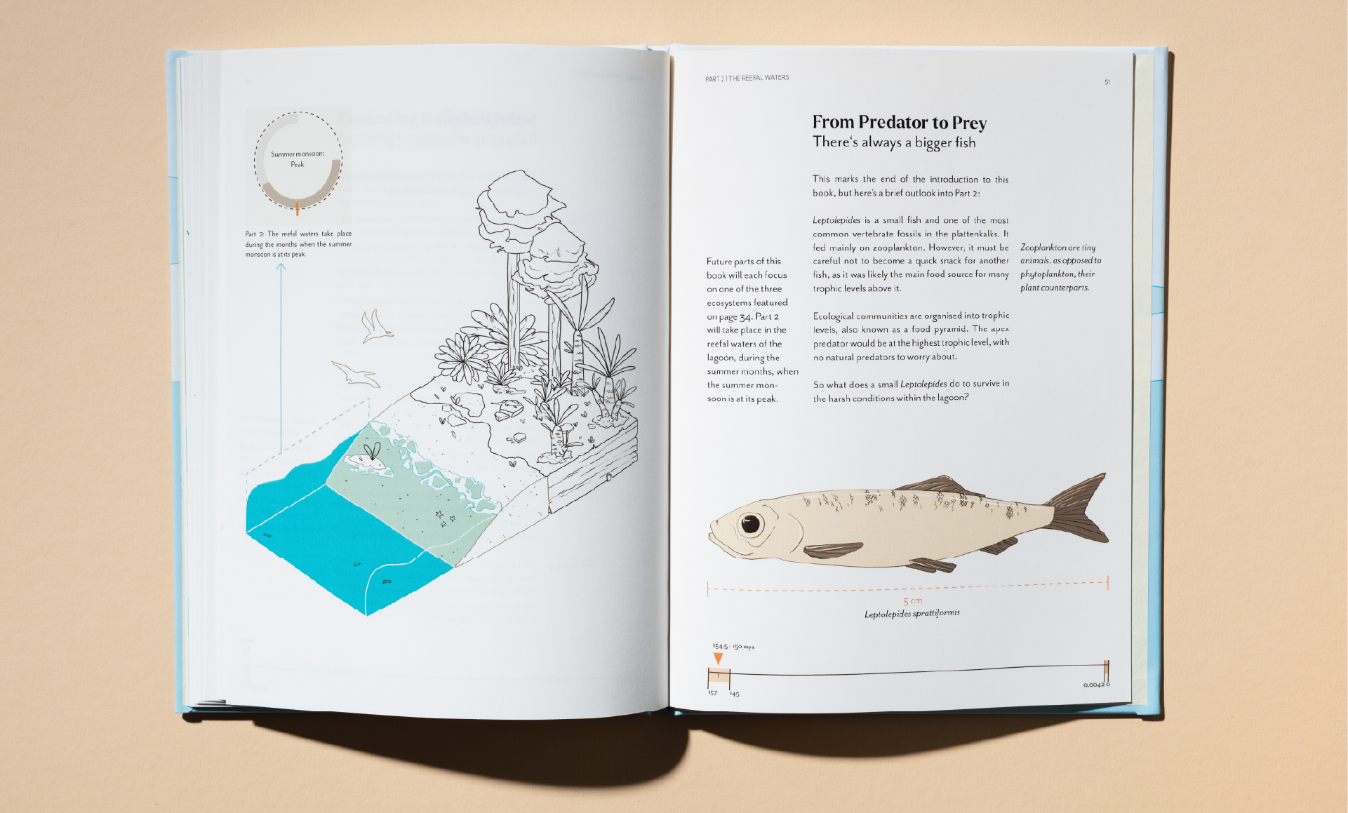 Das Ergebnis ist Teil 1 von 5: eine Einführung in die Lagune, ihre Monsunverhältnisse in den Jahreszeiten, die relevanten Ökosysteme (Gewässer, Küste, Land) und die Gründe für die außergewöhnlich gute Fossilerhaltung in den Plattenkalken. Teil 1 bereitet die Bühne für das Storytelling der folgenden Abschnitte, die Planung dafür ist bereits abgeschlossen.
